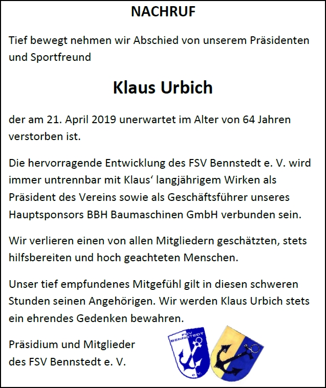 Nachruf Präsident Klaus Urbich